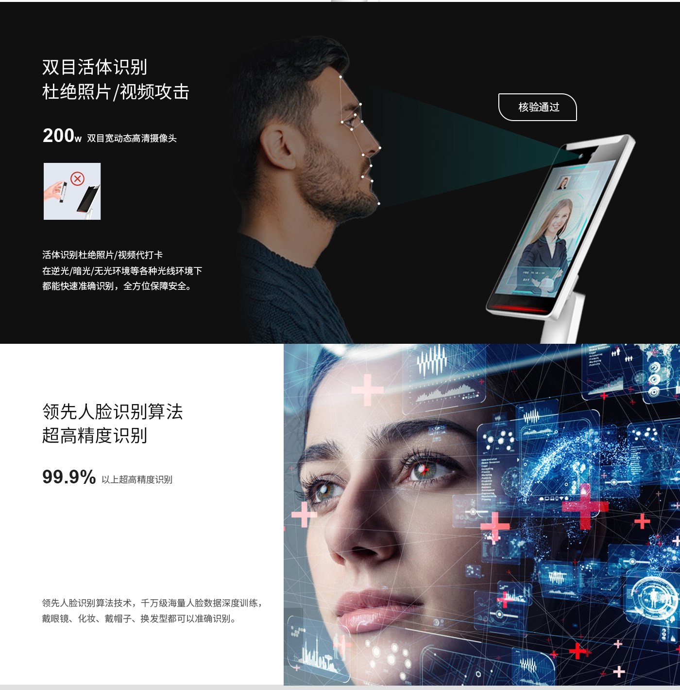 人脸识别准确率99.9%以上,识别速度小于0.6s